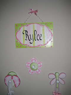 I guess that's about it for right now. Oh yeah- and I added some pics of Rylee's room. It's been very nice having my sister around to help me hang things on the walls! There is also a full size bed in the room so I can sleep in there when Sandy has company, but I don't have the pillows made for it yet and don't have anything on the walls so I didn't post any pics of that side of the room except for the night stand that I got at Hobby Lobby. I was also going to post a belly shot but I am just too huge...couldn't torment myself like that.